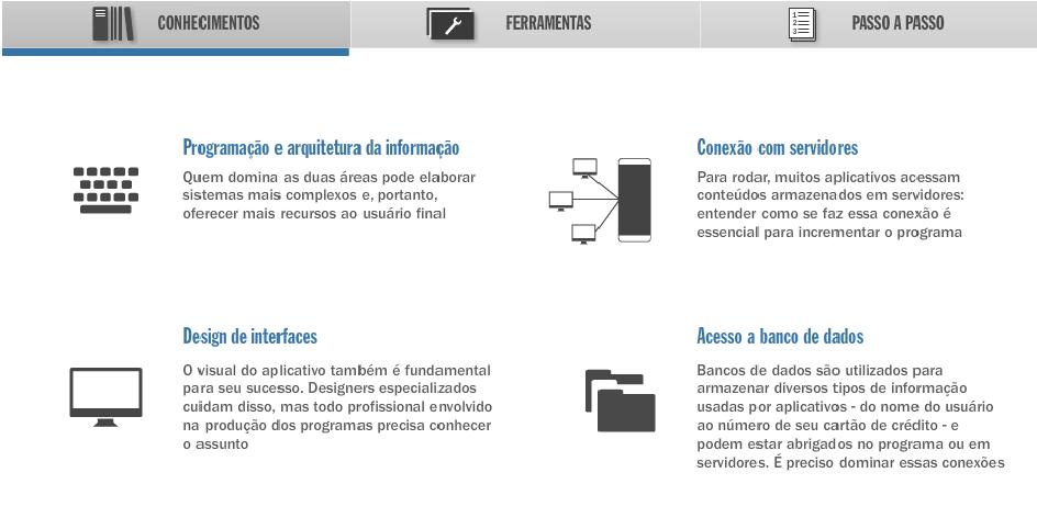 O desenvolvimento de aplicativos não é uma arte tão complicada. As empresas por trás das plataformas mais populares do mercado já fornecem guias e ferramentas voltados a novos profissionais. Para se destacar, porém, é preciso investir em conhecimentos específicos. Confira a seguir as habilidades e equipamentos necessários para a realização de aplicativos em alto nível, segundo a agência mob376. Entenda também como são feitos esses programas.