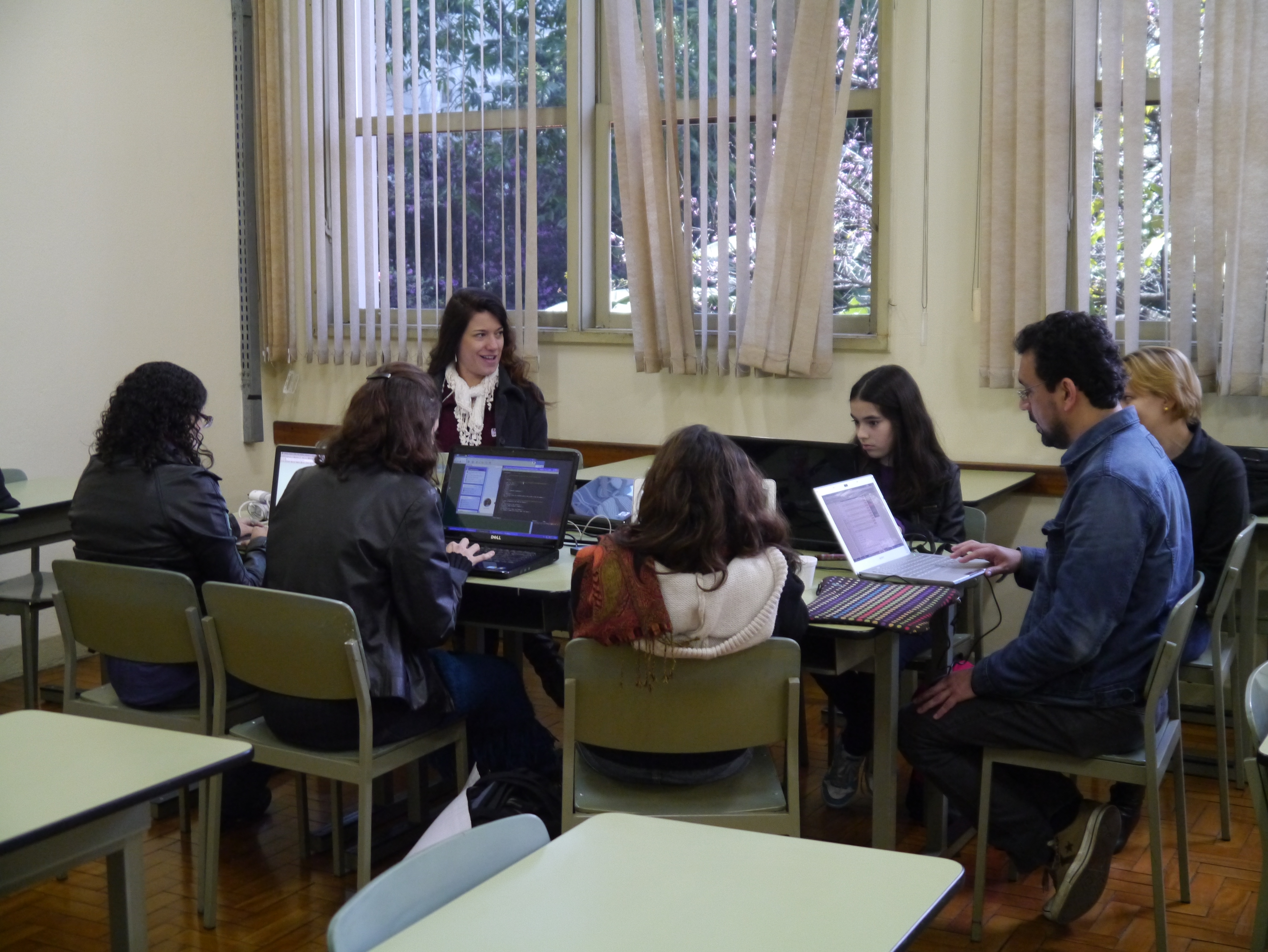 O grupo tinha dois tutores e eles trabalharam muito bem com 5 meninas bastante curiosas e inquietas. Tiveram uma exposição inicial de HTML, CSS e Javascript básico. Depois desse panorama algumas queriam se arriscar no wordpress e o fizeram. Aqui é assim! Liberdade! Cada uma trabalhou no seu site pessoal e deixou do jeitinho que queria.