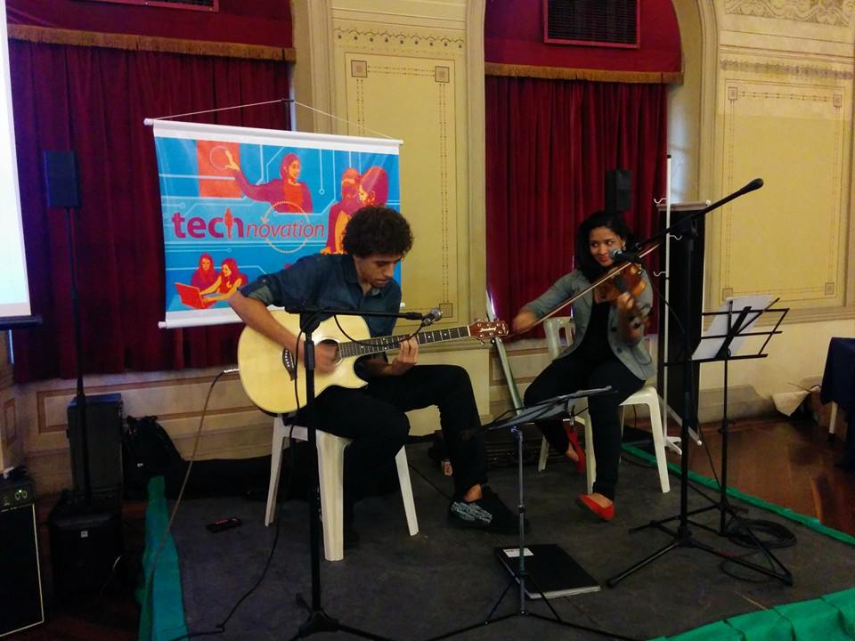 Para começar a esquentar os motores tivemos música ao vivo de dois jovens músicos e uma delas era a Joyce, uma das meninas que foi para São Francisco representando o Brasil o ano passado. Lindo demais! Arrasaram! Enquanto eles faziam uma belo show para gente os jurados e convidados do evento passaram de grupo em grupo para entender melhor as ideias e aplicativos que tinham sido desenvolvidos nos últimos 3 meses para que eles pudessem dar o voto popular conscientes! Já vou adiantar e dizer que a voz do povo é justa e eles todos amaram a primeira colocada do desafio da região sudeste ❤