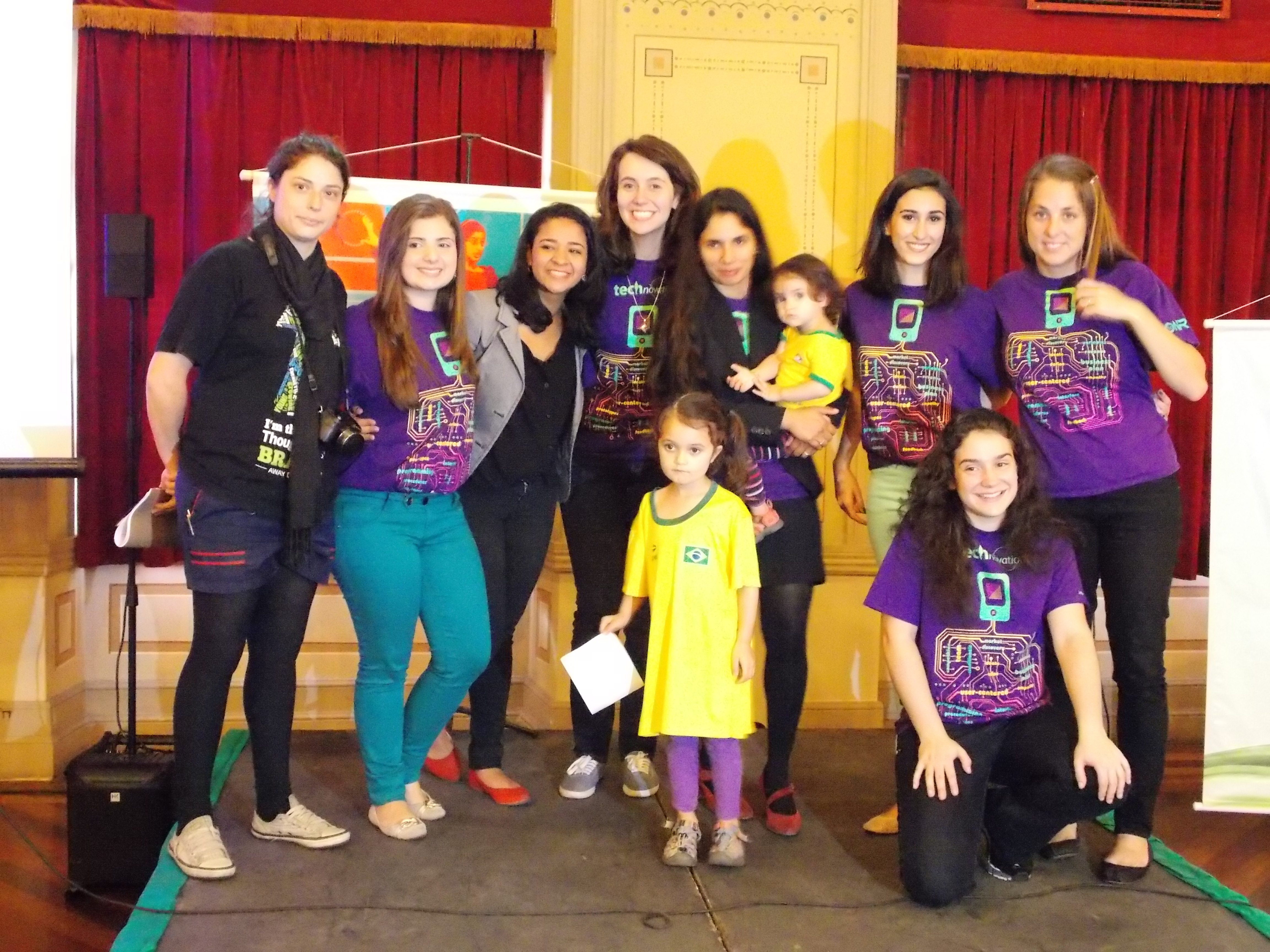 Depois pudemos contar com a Nath e a Andressa como mestres de cerimônia…elas arrasaram! A abertura foi feita pela Mariana Rutigliano, a primeira mentora brasileira que trabalhou junto com as meninas que ficaram em terceiro lugar ano passado, lembram?! Foi dela também a ideia de trazer para o Brasil o desafio. Contamos também com a Tara Chklovski, a CEO indiana da ong-mãe do Technovation, que arriscou e mandou muito bem no português. Emocionante ver o carinho que elas sentem pelo Brasil e todo o orgulho de ver o maior desafio de tecnologia só para meninas também estar arrasando no país.