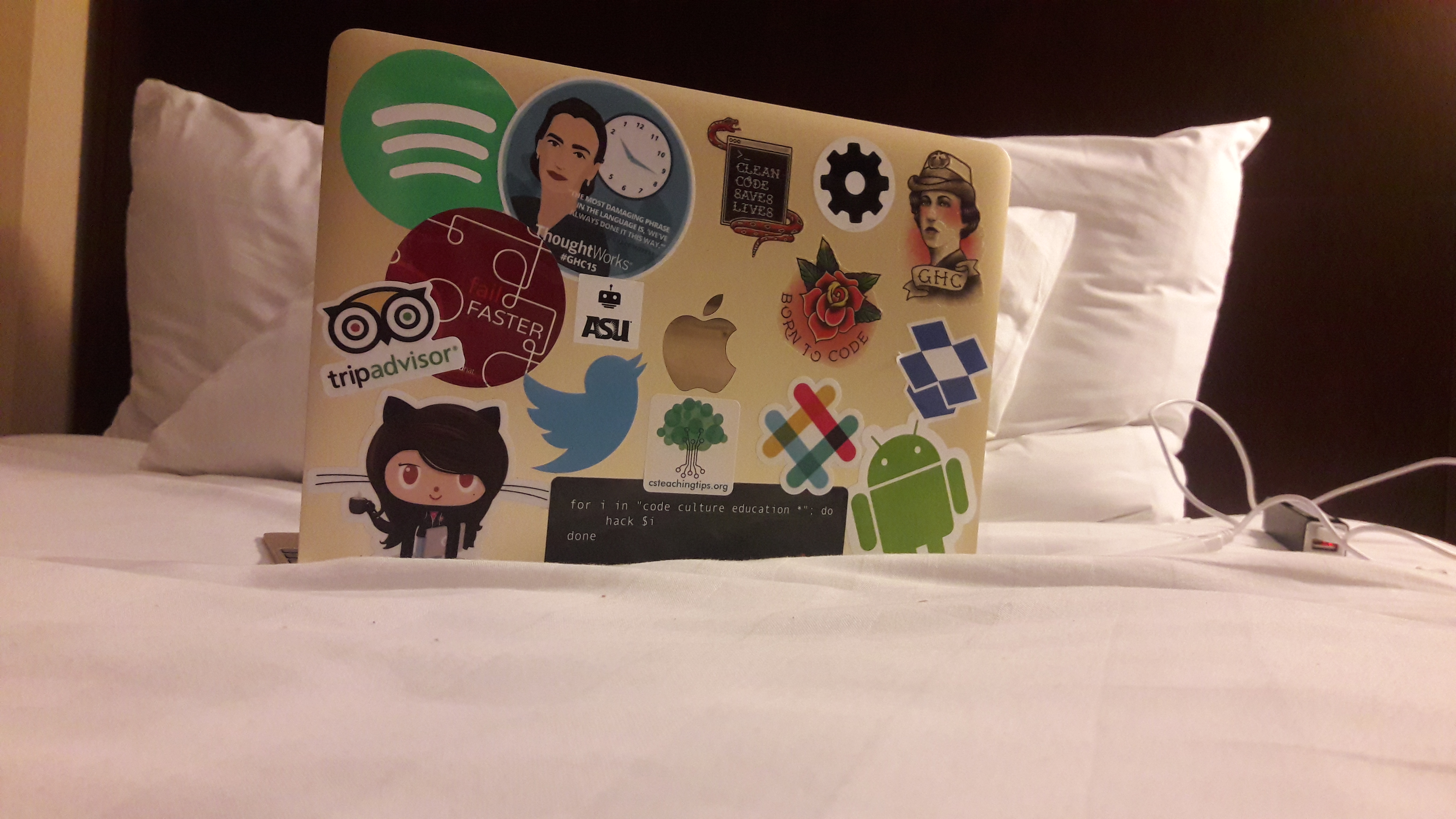 20151014_222352 Anterior Próxima Publicado 15/10/2015 at 4128 × 2322 in #GHC15: Day 1 – INCRÍVEL! Já colei todos os adesivos que eu ganhei na Career Fair!