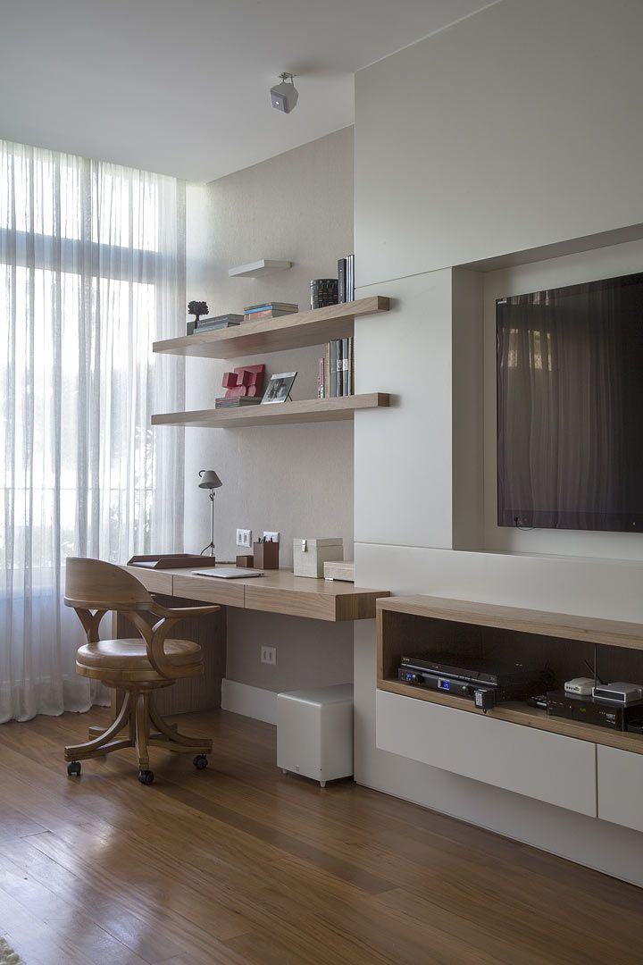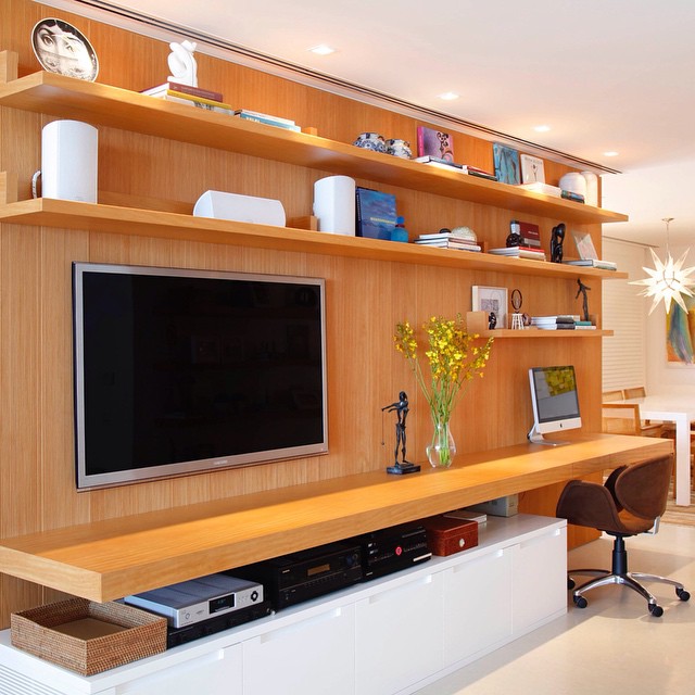 Para quem trabalha em casa um dos maiores desafios é conseguir um bom espaço, onde você consiga trabalhar, com uma mesa, um boa iluminação e espaço para organizar. As casas estão cada vez menores e conseguir um cômodo apenas para escritório é muito difícil, pensando nisso hoje eu separei algumas inspirações para integrar seu escritório com o painel de tv, são soluções que ajudam a otimizar o espaço e podem fazer muita diferença em locais pequenos, então vamos lá: